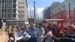 - Под централниот слоган „Не за 13-часовно работно време“, најголемите грчки синдикати на вработените во државниот (АДЕДИ) и во приватниот сектор (ГСЕЕ), одржаа мирен и масовен протестот во центарот на Атина во рамките на денешниот генерален штрајк, со цел да го изразат нивното незадоволство за новиот закон за работни односи, јави дописничката на МИА од Атина.