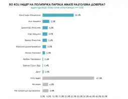 На прашањето во кој лидер на политичка партија имате најголема доверба, една четвртина од испитаниците се изјаниле дека (25,2%) најголема доверба имаат во Христијан Мицкоски. Потоа следат Али Ахмети (5,6%), Димитар Апасиев (4,2), Изет Меџити (3,9%), Венко Филипче (3,6%), Максим Димитриевски (3%) .
