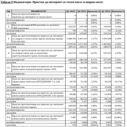 Бројот на претплатници на пристап до интернет со широк опсег во првите три месеци од годинава изнесува 547.513 со раст од 0,17 проценти во однос на четвртиот квартал лани, односно 2,27 проценти споредено со првиот квартал лани.