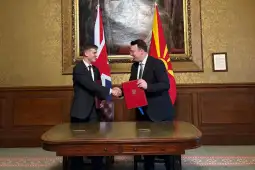 Скопје, 23 октомври, 2025 (МИА) - Заменик претседателот на Владата и министер за транспорт Александар Николоски и Киер Метер, министер за воздухопловство, поморство и декарбонизација во Лондон го потпишаа Договорот за редовен воздушен сообраќај помеѓу Македонија и Велика Британија.