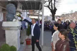 Кочани, 23 март 2026 (МИА) - Со пригодни активности и оддавање почит, ОУ „Раде Кратовче“ и СОУ „Љупчо Сантов“ во Кочани денеска ги одбележаа патроните празници. Пред бистите во училишните дворови и во Паркот на револуцијата, градоначалникот на Општина Кочани Владко Грозданов, училишни и општински делегации положија цвеќе и им оддадоа почит на борците кои ги положија своите животи во антифашистичката борба.