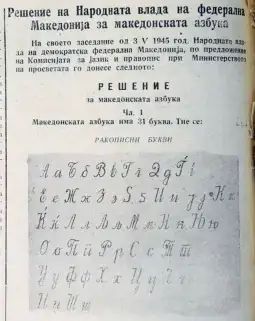 На 7 јуни 1945 г. е усвоен и правописот на македонскиот јазик, а набргу потоа следуваат и основоположничките дела на великанот на македонскиот јазик, Блаже Конески – Граматиката на македонскиот литературен јазик, Историјата на македонскиот јазик, како и тритомниот Речник – и со тоа се заокружува кодификацијата на македонскиот јазик.