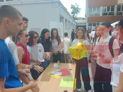 Велес, 28 мај 2025 (МИА) – Преку Отворен ден традиционално учениците и наставните од СОУ „Јовче Тесличков“ во Велес едно од најстарите во земјава пред деветооделенците од градот и поширокиот регион на трите Општини Велес,Градско и Чашка ги претставија своите образовни профили:Е-трговија и дигитален маркетинг,бизнис администратор –дуална паралелка,економски техничар –дуална паралелка,и тригодишните профили:асистент деловен администратор,продавач-референт за продажни услуги.Во наредната учебна 2025/26 година, а уписот ќе биде во четири паралелки.