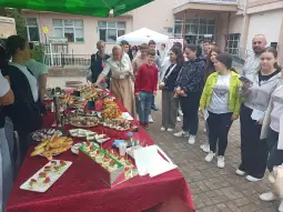 Дворот на училиштето денеска беше исполнет со креативна атмосфера, каде што некои од учениците цртаа, свиреа и пееја. Беа поставени штандови на образовните сектори, како и на Црвениот крст од Велес и од фирмите - социјални партнери на училиштето кои придонесуваат значајно во практичната настава и обука на учениците во дуалните паралелки.