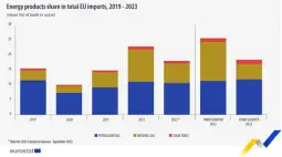 Во текот на 2021 година учеството на нафтата и нафтените деривати во вредноста на вкупниот увоз на ЕУ изнесуваше 9,1 еден отсто, во 2022 година порасна на 11 проценти, а во првите три квартали од оваа година е 10,6 отсто.