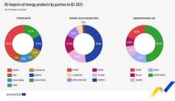 Статистичките податоци на Евростат укажуваат на намалување на учеството на руските енергенси во увозот во ЕУ, како резултат на агресијата на Русија врз Украина. Така, во третиот квартал од 2022 година руските енергенси учествуваа со 14,5 отсто во вкупниот енергетски увоз во ЕУ, за во истото тримесечје од оваа година тоа учество да се сведе на 6,5 проценти. сп/