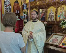 - Само литургијата ја служиме на македонски и англиски јазик, додека венчавките, крштевките, погребите се само на англиски јазик. Не само поради тоа што присуствуваат и луѓе од други националности, туку и поради тоа што втората или третата генерација Македонци родени во Канада не го зборуваат македонскиот јазик, посочи отец Ристески.