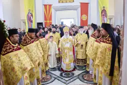 -Тоа беше Евхаристија што непосредно ги поврзуваше земните со небесните. Преку неа повторно и повторно се откри смислата на подвигот на Светите Рамноапостоли: дека човекот станува светлина само кога е просветлен од Словото, дека културата станува корисна и спасителна само кога извира од Крстот, нагчасуваат од Бигорскиот манастир.
