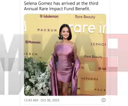 Таа, имено, пред фотоапаратите, на црвениот тепих на настанот „Рејр импакт фанд бенефит“ (Rare Impact Fund Benefit) што третпат се одржа синоќа во Лос Анџелес во организација на Фондацијата „Рејр импакт“, излезе во виолетов минифустан и наметка во иста боја. Метално-сјајниот минифустан беше во иста нијанса како и високите потпетици, а изгледот го комплетираше со дијамантски обетки и шминкаод сопствениот моден бренд „Рејр бјути“ (Rare Beauty).