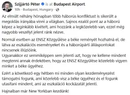 По тој повод, Сијарто објави дека во текот на следната недела, Унгарија ќе ги поддржи сите иницијативи што го приближуваат мирот и ќе отфрли сè што претставува ризик од ескалација.