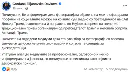 - Фотографијата објавена на моите официјални профили на социјалните мрежи, на којашто сум заедно со претседателот на САД, Доналд Трамп, е автентична и направена во Њујорк за време на свечениот традиционален прием организиран од претседателот Трамп и неговата сопруга, Меланија Трамп, реагираше претседателката на државата Гордана Силјановска - Давкова.