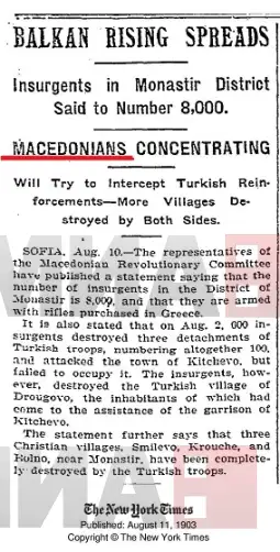 -Во август 1903., и следните месеци, печатот ширум целиот свет известува за Илинденското востание. Имено, за време на, пред и по востанието, написи се појавуваат во секој дел од нашата планета. Почнуваме со весникот „Њујорк тајмс“ (The New York Times)...