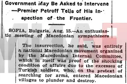 Имено, бугарскиот премиер нагласил дека „Востанието е целосно национално македонско движење, организирано од 'Македонскиот внатрешен комитет'.“ Тоа, вели изворот, ја покажала и сета жестокост на несаканите собитија во коишто турските војници ги пљачкосувале и ги уништувале македонските села. Тој цитат на бугарскиот државник го гледаме и во други западни весници.