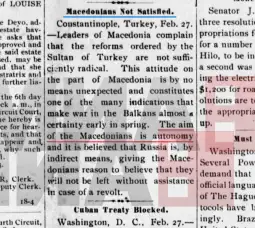 Исто така, хавајскиот „Хило трибјун“ (Hilo Тribune) неколку месеци претходно пишува дека целта на Македонците е автономија.