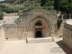 По сопствена желба Богородица била погребана во Гетсиманската градина, каде што биле гробовите на нејзините родители Јоаким и Ана и на свршеникот (старателот) Јосиф. За време на погребот светиот апостол Јован ја носел рајската гранка пред погребната поворка, апостолите го носеле телото на Богородица, а над нив се слушало пеењето на ангелите. Светол облак ја завиткувал поворката и непријателите не можеле да се приближат, иако постојано ја следеле и се обидувале да ја растурат поворката, а телото на Богородица да го запалат. Во еден момент на едно место малку се поткренал облакот и се видел ковчегот во кој била Богородица. Тогаш еден од еврејските свештеници се затрчал кон него, го фатил со рацете за да го преврти. Но во тој момент невидлив ангел со меч му ги отсекол рацете и дланките останале залепени на ковчегот. Свештеникот се покајал за тоа што сакал да го направи и заплакал, а апостолот Петар му рекол да ги допре рацете до пресечените дланки. Кога тоа го направил се случило чудо, рацете зараснале како никогаш да не биле пресечени. Сите што виделе се увериле дека Исус навистина е синот Божји и на тој ден многумина се крстиле и го примиле христијанството.