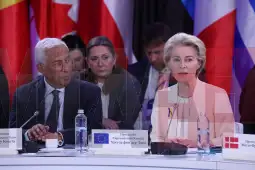 Како што јави известувачот на Европската новинска редакција (ЕНР), од која дел е и МИА, во говорот на Самитот што се одржува на третата годишнина од почетокот на руската агресија врз Украина, Фон дер Лајен оцени дека никој не сака мир повеќе од народот на Украина, но дека до праведен и траен мир се доаѓа само преку сила.