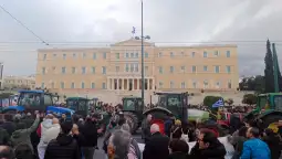 Фотогалерија од протестот на грчките земјоделеци со десетици трактори во центарот на Атина и пред грчкиот Парламент