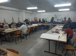 - Во исто време во друга сала на училиштето се одржа и ликовна работилница на која и средношколците од оваа училиште заедно со гостите - основци од велешките училишта заедно цртаа постери - плакати со тематика на маски од празникот Прочка. Потоа нацртаните плакати и подготвените пити и баклави на штанд ги изложија на платото пред Театарот. Собраните средства од продажбата на подготвените пити и баклавите, како и во изминатите години ќе бидат хуманитарно наменети за помош на ранливи семејства чии ученици учат во оваа средно државно училиште кое е Регионален центар за Повардарието, информира за МИА Горан Богоевски, директор на училиштето.