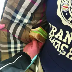 - При личен претрес на лицата во џебот од јакната на возачот биле пронајдени 23.900 евра, а во неговиот паричник и во предниот џеб од панталоните биле пронајдени 3 златни монети, секоја со маса од речиси 8 грама и една златна плочка со маса од 90-ина грама. Во согласност со законските прописи, на патникот му биле вратени 10.000 евра, износ што резидент може слободно да го изнесе од државата, а 13.900 евра, златните монети и златната плочка се привремено задржани - соопшти Царинската управа.