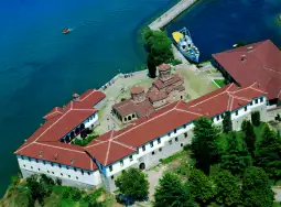 Овој манастир е подигнат од св. Наум Охридски чудотворец и го носи неговото име. Попознат е како манастир Свети Наум Охридски иако црквата е посветена на светите архангели Михаил и Гаврил. Во житието на Св. Наум се вели дека црквата била подигната на јужниот брег на Охридското Езеро и дека била посветена на светите архангели Михаил и Гаврил. Манастирот повеќепати страдал од пожари и уривање, по што пак бил обновуван. Едно време бил важен просветен центар. Во него во почетокот на 19 век се школувал и Димитрија Миладинов. Во црквата се наоѓа и гробот на св. Наум Охридски и многу луѓе од разни вери и националности го посетуваат и бараат исцеление. Околу манастирот има повеќе свети води, Света Петка, Свети Атанасиј, Агијазмо и др.