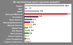Sipas anketës, në pyetjen "Në cilin politikan besoni më shumë?", 27.3 për qind e të anketuarve janë përgjigjur për Hristijan Mickoskin, ndërsa 25.5 për qind për - asnjë dhe 9.5 për qind nuk e dinë ose nuk kanë përgjigje. Nëntë për qind kanë besim më të madh te lideri i BDI-së, Ali Ahmeti, 5.1 për qind te kryetari i LSDM-së, Venko Filipçe, 5 për qind te Dimitar Apasievi nga E Majta, 3.8 për qind te Maksim Dimitrievski. Vijojnë me 3.5 për qind Izet Mexhiti, 2.8 për qind Bilall Kasami, 2.3 për qind Afrim Gashi, 2.1 për qind presidentja Gordana Siljanovska Davkova, 1.3 për qind ish presidenti Stevo Pendarovski, 1.1 për qind ish kryeministri Nikolla Gruevski.