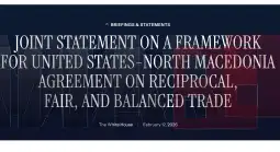 - Njoftimi i Shtëpisë së Bardhë në Deklaratën e përbashkët mes SHBA-së dhe Maqedonisë për tregti reciproke paraqet një sinjal të qartë për thellimin e partneritetit strategjik dhe konfirmim për mbështetjen e fortë që Maqedonia e gëzon nga SHBA, thotë kryeministri Hristijan Mickoski.