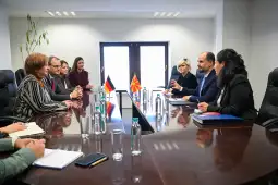 Shkup, 19 dhjetor 2025 (MIA)- Ministri për Çështje Evropiane, Orhan Murtezani, sot zhvilloi takim me ambasadoren e Republikës Federale të Gjermanisë në Republikën e Maqedonisë së Veriut, Petra Dreksler, si dhe me përfaqësuesit e Shoqatës Gjermane për Bashkëpunim Ndërkombëtar (GIZ).