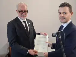manastir, 19 dhjetor 2025 (MIA) - Ministri i Punëve të jashtme dhe Tregtisë së Jashtme, Timço Mucunski dhe ambassadori austriak në vend, Martin Pamer, në Manastir e hapën Konsullatën e re të nderit dhe e promovuan afaristin nga Manastiri, Igor Bozhinovski si Konsull nderi i Republikës së Austrisë.