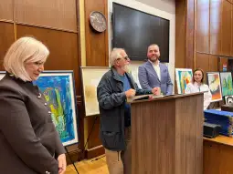 Shkup, 18 mars 2026 (MIA)- Në amfiteatrin e Klinikave Interne u mbajt aktivitet solemn me rastin e pranimit të veprave artistike të dhuruara për Klinikën e gastroenterohepatologjisë, si dhe ndarja e mirënjohjeve për artistët donatorë.