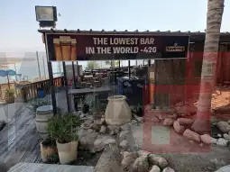 Продолжувате. Ги следите знаците. Пред да скршнете по патот кој води директно до плажата, ве пречекува „најнискиот бар во светот“ - така е наречен зашто е на околу 420 метри под нивото на морето. Ова е совршено место за да испиете некое кафе или ладен пијалок со поглед на морето и јорданските планини од спротивната страна.